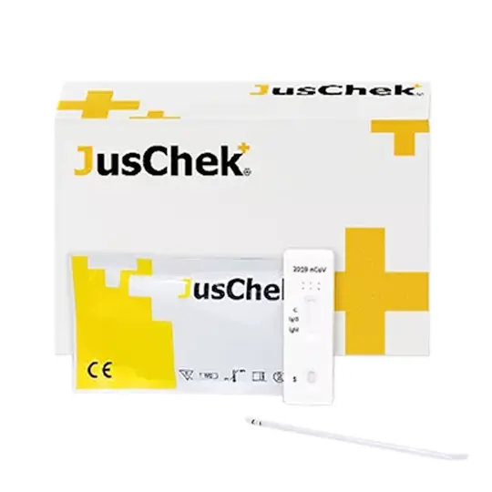Juschek Antigen Rapid Test (Nasopharyngeal Swab) 1 Kit merupakan tes berbasis membran kualitatif immunoassay untuk mendeteksi Antigen SARS-CoV-2 pada swab nasofaring dari individu yang diduga terpapar Covid.