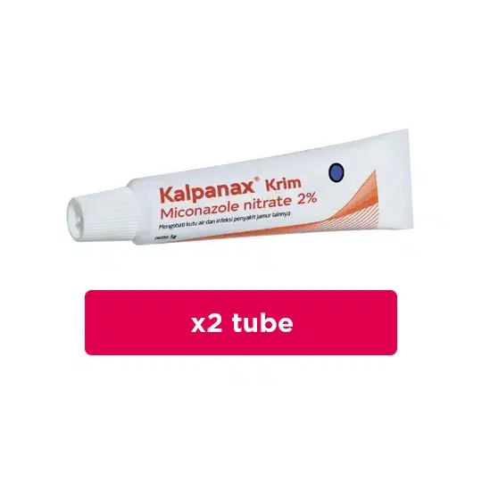 KALPANAX KRIM 5 G adalah sediaan topikal antijamur golongan imidazol yang efektif digunakan untuk mengatasi infeksi jamur pada kulit. Produk ini mengandung Miconazole Nitrate 2%, yang bekerja dengan menghambat biosintesis ergosterol pada jamur, komponen penting pada membran sel jamur, sehingga mengganggu integritas membran dan menyebabkan nekrosis sel jamur. Krim ini secara umum diindikasikan untuk pengobatan berbagai kondisi infeksi kulit yang disebabkan oleh fungi seperti Trichophyton, Epidermophyton, Microsporum, Candida, dan Malessezia furfur. Contoh infeksi yang dapat ditangani meliputi tinea pedis (kutu air), tinea cruris (gatal pada selangkangan), tinea corporis (kurap), dan kandidiasis kulit.