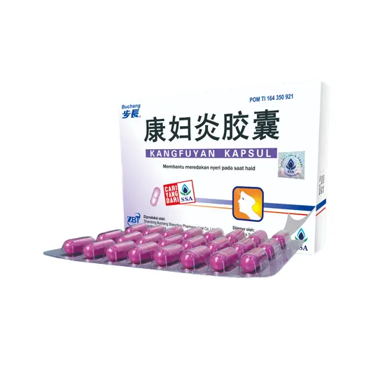 Kangfuyan adalah sediaan herbal yang diformulasikan untuk membantu meredakan nyeri haid. Produk ini mengandung ekstrak dari rimpang teki (Cyperus rotundus Rhizoma) dan buah adas (Foeniculum vulgare Fructus), serta bahan herbal lainnya. Ekstrak rimpang teki secara tradisional dikenal memiliki penggunaan dalam membantu meredakan ketidaknyamanan, termasuk nyeri. Sementara itu, ekstrak buah adas juga diketahui sering digunakan dalam ramuan herbal yang berhubungan dengan kesehatan pencernaan dan kenyamanan perut. Kombinasi dari ekstrak herbal ini bertujuan untuk membantu menenangkan dan membantu tubuh mengurangi rasa nyeri yang mungkin timbul saat haid.