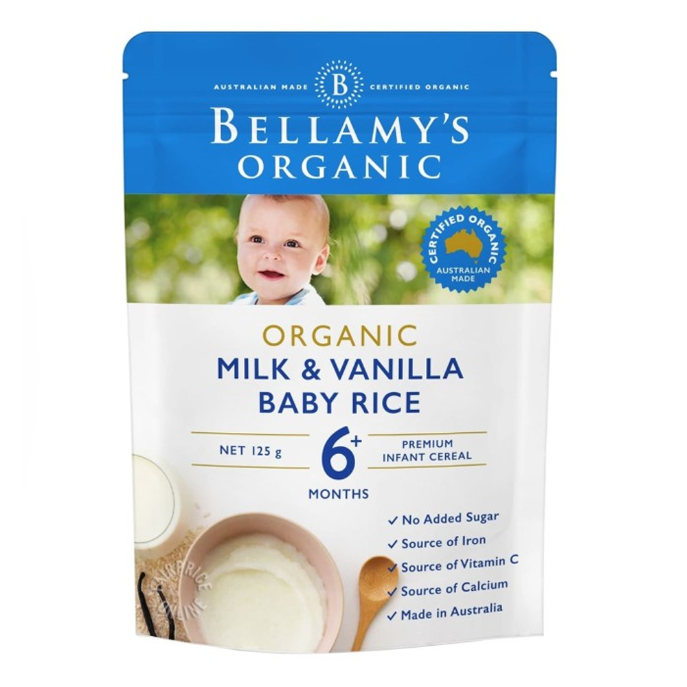 Bellamys Organic Milk Vanilla Baby Rice with Prebiotic 6M+ 125 g