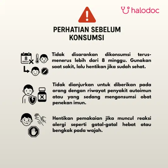 Kesehatan tubuh tidak lepas dari pemenuhan nutrisi yang baik dan gaya hidup sehat. Namun sebagai masyarakat modern yang sibuk, tidak jarang nutrisi dari makanan yang dibutuhkan tubuh sulit terpenuhi. Padahal, kebutuhan nutrisi harian perlu dipenuhi agar tubuh tetap sehat. Salah satu caranya dengan mengonsumsi vitamin tubuh dan suplemen tambahan untuk menunjang kebutuhan nutrisi harian. Ada banyak jenis suplemen kesehatan yang bisa dipilih sesuai kebutuhan. Misalnya, suplemen vitamin, mineral, asam amino, asam lemak, dan serta. Bentuk suplemen juga beragam, mulai dari bubuk shake, cairan, tablet, kaplet, pil, kapsul lunak, hingga masker. Kamu dapat memilih produk suplemen sesuai kebutuhan dan bentuk yang diinginkan. Suplemen terbagi menjadi dua, yaitu multivitamin dan non-multivitamin. Kata multivitamin berarti suplemen yang dikonsumsi mengandung tiga atau lebih vitamin dan mineral. Beberapa suplemen multivitamin biasanya mengandung vitamin C, vitamin B kompleks (B1, B2, B3, B5, B6, dan B12), vitamin A, vitamin E, vitamin D3, vitamin K1, kalium iodida, tembaga, seng, besi, betakaroten, kalsium, magnesium, kromium, dan mangan. Kebanyakan suplemen multivitamin tidak mengandung hormon, obat, dan bahan herbal. Kata non-multivitamin berarti suplemen yang dikonsumsi mengandung suplemen non-vitamin dan non-mineral. Misalnya, bahan herbal, masker, susu bubuk, dan kandungan non-vitamin lainnya. Suplemen non-multivitamin biasanya dikemas dalam bentuk pil, kapsul lunak, gel, kaplet, dan cairan. Contohnya adalah minyak ikan, probiotik atau prebiotik, ginkgo biloba, pil teh hijau, ginseng, echinacea, suplemen bawang putih, glukosamin, protein shake, dan lainnya. Bagi kamu yang ingin beli vitamin untuk menjaga daya tahan tubuh, tidak perlu repot lagi pergi ke apotek atau toko obat, karena Halodoc menjual vitamin dan suplemen kesehatan lengkap yang kamu butuhkan. Tanpa harus keluar rumah, kamu bisa pesan vitamin online melalui aplikasi atau website Halodoc, yang menyediakan berbagai pilihan suplemen dan vitamin, mulai dari Imboost, Astria, Blackmores, dan masih banyak lagi. Selain bisa beli obat dan vitamin dengan praktis dan mudah, kamu juga bisa temukan berbagai informasi artikel kesehatan mengenai penyakit, gaya hidup, tips kesehatan, dan berbagai informasi lainnya. Temukan produk suplemen kesehatan yang dibutuhkan dan pilih produk mana saja yang ingin dibeli lewat aplikasi dan website Halodoc. Kamu tidak perlu ragu membeli vitamin untuk kekebalan tubuh di Halodoc karena ada banyak produk berkualitas (terdaftar BPOM) yang bisa dibeli. Proses pembayaran hingga pengiriman juga mudah dilakukan, sehingga produk terjamin aman sampai ke rumah. Kebutuhan Vitamin dan Suplemen Harian
