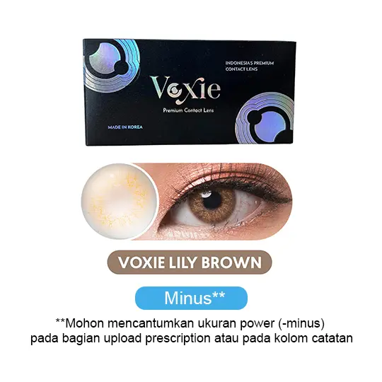 Kawai Gankyu Voxie Lily Brown merupakan softlens minus dengan masa penggunaan maksimal 6 bulan. Softlense ini memiliki diameter 14 mm dan kadar air 38%.