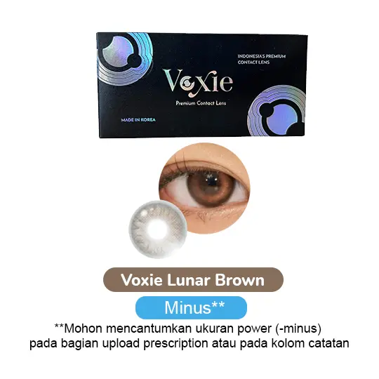 Kawai Gankyu Voxie Lunar Brown merupakan softlens minus dengan masa penggunaan maksimal 6 bulan. Softlense ini memiliki diameter 14 mm dan kadar air 38%.