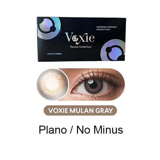 Kawai Gankyu Voxie Mulan Gray Softlens Plano/No Minus untuk penggunaan 6 Bulan.
