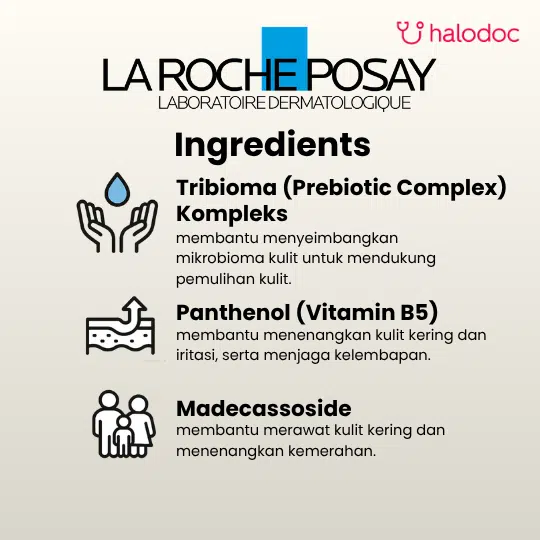 Formula ini berpusat pada kombinasi bahan aktif yang menenangkan dan memperbaiki. Panthenol 5% (Vitamin B5) bekerja menenangkan kulit yang kering dan teriritasi, serta mendukung proses perbaikan lapisan pelindung kulit (skin barrier). Madecassoside, ekstrak dari Centella Asiatica, membantu mempercepat proses pemulihan kulit. Tribioma, kompleks prebiotik unik, membantu menyeimbangkan kembali mikrobioma kulit. Kombinasi ini dilengkapi dengan Copper-Zinc-Manganese dan Shea Butter yang memberikan nutrisi dan menjaga kelembapan kulit.