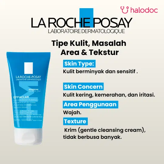 LA ROCHE POSAY EFFACLAR PURIFYING FOAMING GEL+M 50 ML adalah gel pembersih wajah berbusa yang diformulasikan khusus untuk kulit berminyak dan sensitif. Diperkaya dengan Zinc PCA dan Thermal Spring Water, formulasi ini membersihkan kulit secara mendalam tanpa merusak lapisan pelindung alami kulit, sehingga wajah terasa segar tanpa sensasi ketarik.