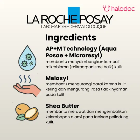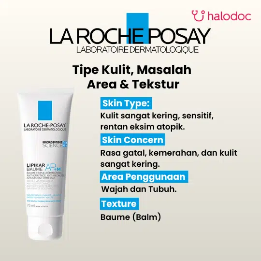 La Roche Posay Lipikar Baume AP+M 75 ml adalah pelembap bertekstur baume (krim pekat) yang diformulasikan untuk membantu merawat kulit yang sangat kering, iritasi, dan rentan terhadap eksim atopik. Formulanya bekerja dengan menargetkan keseimbangan mikrobiom kulit, yaitu ekosistem mikroorganisme yang krusial untuk kesehatan kulit. Teknologi AP+M di dalamnya mengkombinasikan Aqua Posae Filiformis, bahan alami untuk membantu menyeimbangkan kembali mikrobiom, dengan bahan aktif baru Microrésyl yang membantu membatasi biofilm (lapisan pelindung) dari bakteri pemicu iritasi. Didukung oleh kandungan Shea Butter konsentrasi tinggi dan Niacinamide, baume ini bekerja untuk menutrisi secara intensif, membantu memperbaiki lapisan pelindung kulit (skin barrier), dan menenangkan rasa gatal serta kemerahan.