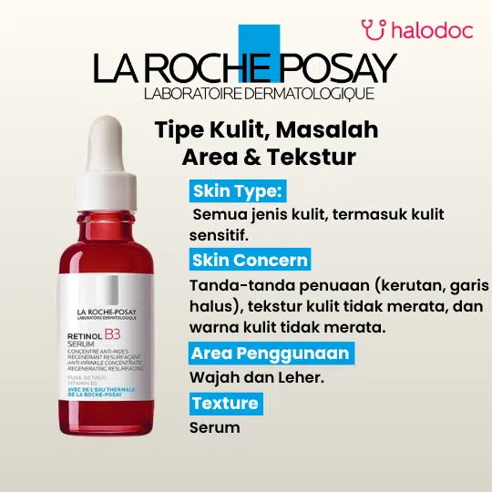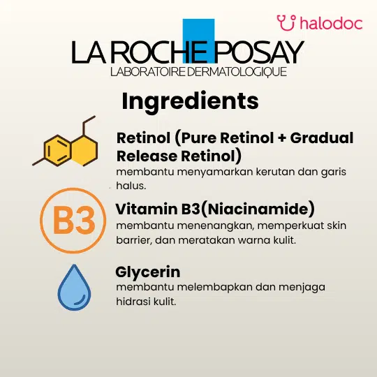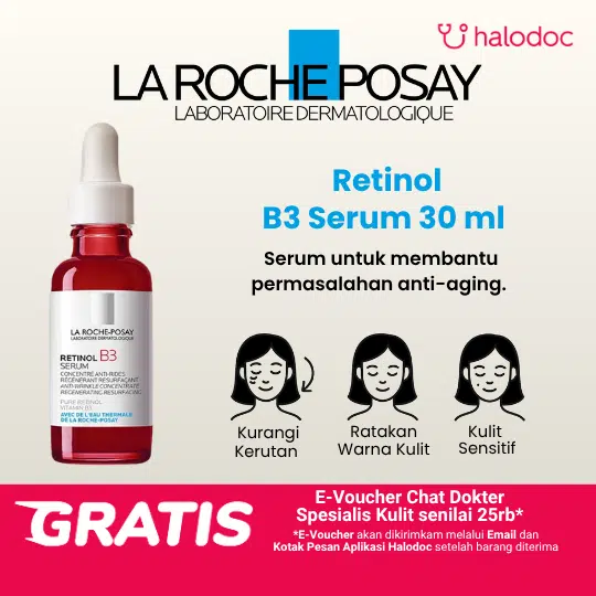 La Roche Posay Retinol B3 Serum merupakan perawatan kulit dalam bentuk cair yang melembapkan, lembut dan tidak lengket. Serum ini membantu pembaharuan kulit dengan gold standard molecule Retinol yang mudah menyerap diperkaya dengan Vitamin B3 untuk menenangkan kulit. Serum Retinol B3 memiliki formula yang unik dan kompleks dengan Pure + Gradual Retinol, yaitu Retinol murni yang bekerja secara bertahap untuk menyamarkan tanda-tanda penuaan. Dilengkapi dengan Vitamin B3 untuk membantu pembaharuan kulit yang lebih optimal serta dapat ditoleransi oleh kulit sensitif.
