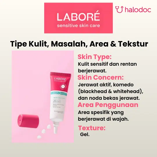 LABOR� Sensitive Skin Care Acne Spot Gel merupakan gel totol jerawat yang diformulasikan oleh Dermatologist untuk mengatasi berbagai jenis jerawat, seperti papule, pustule, hingga nodule, secara cepat dengan hasil terlihat mulai dari 6 jam tanpa rasa cekat cekit dan tanpa bekas luka dan teruji dapat: