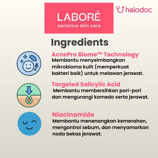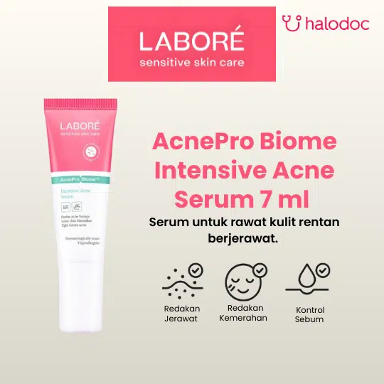 Labore Sensitive Skin Care AcnePro Biome Intensive Acne Serum 7 ml adalah serum perawatan intensif yang dirancang untuk kulit berjerawat. Fokus utama formula ini adalah pada keseimbangan mikrobiom kulit. Pada kulit berjerawat, bakteri seringkali membentuk struktur yang disebut biofilm, yang bertindak sebagai pelindung dan membuat jerawat lebih sulit diatasi. Serum ini menggunakan teknologi AcnePro Biome™ untuk membantu mengganggu struktur biofilm tersebut, sehingga dapat mengatasi jerawat lebih efektif dari akarnya dan menjaga keseimbangan ekosistem mikroorganisme kulit. Formula ini bertujuan untuk mengurangi jerawat yang sudah ada, membantu memperbaiki tekstur kulit pasca-jerawat, dan mengurangi potensi munculnya jerawat baru.