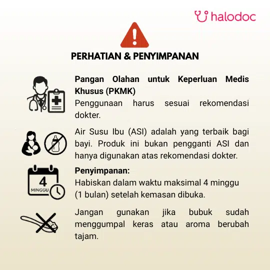 Produk ini merupakan pangan olahan medis khusus untuk bayi yang intoleransi laktosa.