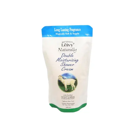 LEIVY SHOWER CREAM GOAT'S MILK merupakan sabun mandi berupa cream yang mengandung manfaat susu kambing, serta menjadikan kulit halus, mulus, wangi, dan tampak lebih putih. Produk ini diperkaya dengan double moisturizing dari kandungan protein susu kambing dan fatty acid. Susu Kambing mengandung vitamin A, B, dan E, serta protein yang menyuburkan dan melembabkan kulit, serta mencerahkan kulit dengan aroma yang lembut. Dengan demikian, maka sabun mandi ini baik digunakan untuk kulit kering.