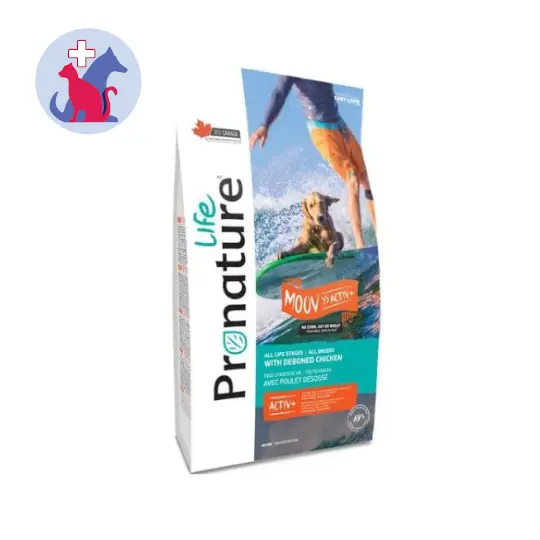 LIFE PRONATURE ADULT DOG ALL BREEDS MOOV ACTIVE + WITH DEBONED CHICKEN merupakan makanan kering khusus untuk anjing dewasa dengan segala ras yang dirancang untuk anjing yang sangat aktif untuk mengisi nutrisi penting dan memenuhi kebutuhan energinya yang lebih tinggi.