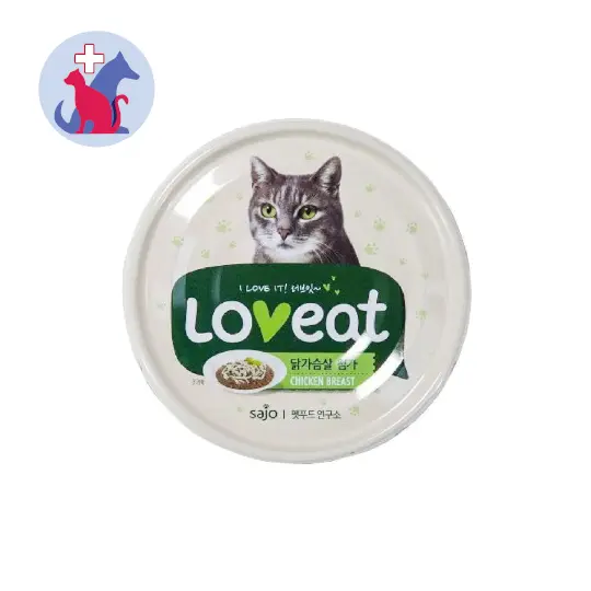 LOVE EAT CAT FOOD CHICKEN BREAST merupakan makanan basah untuk kucing yang ditempatkan pada kaleng. Makanan ini memiliki rasa menarik untuk kucing yang sulit makan.