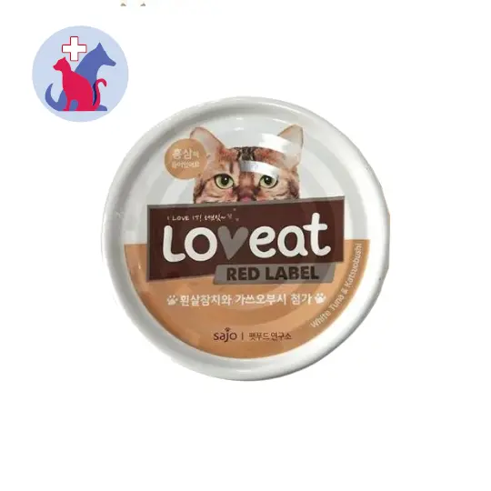LOVE EAT CAT FOOD WHITE TUNA & KATSUOBUSHI merupakan makanan basah untuk kucing yang ditempatkan pada kaleng. Makanan ini memiliki rasa menarik untuk kucing yang sulit makan.