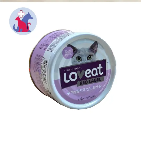 LOVE EAT CAT FOOD WHITE TUNA & SALMON merupakan makanan basah untuk kucing yang ditempatkan pada kaleng. Makanan ini memiliki rasa menarik untuk kucing yang sulit makan.