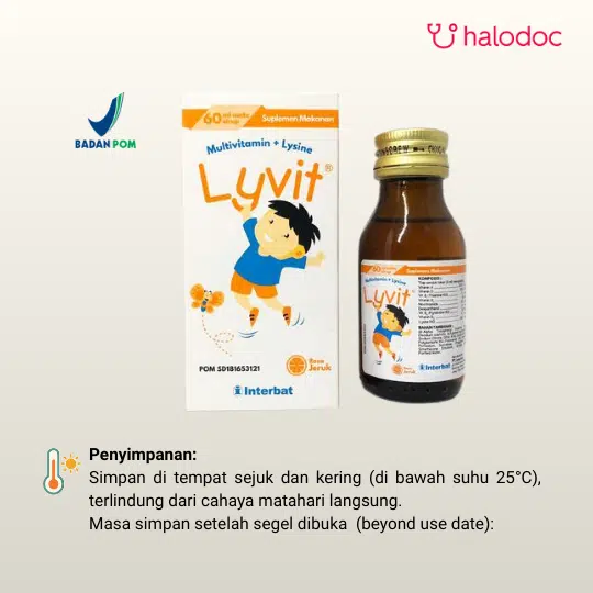 LYVIT SIRUP adalah suplemen multivitamin yang diformulasikan khusus untuk anak-anak dalam bentuk sirup dengan rasa jeruk yang manis dan menyenangkan. Produk ini dirancang sebagai suplemetasi Vitamin A, D, B Kompleks dan Lysine untuk membantu menjaga kesehatan tubuh.