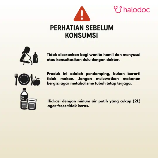 Penggunaan produk ini harus disertai olahraga teratur dan diet rendah kalori dan rendah lemak. Hati-hati penggunaan pada penderita dengan gangguan ginjal dan jantung. Tidak dianjurkan untuk wanita hamil dan menyusui.