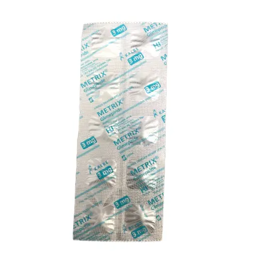 METRIX TABLET merupakan obat anti diabetes mengandung Glimepiride yang termasuk ke dalam golongan sulfonilurea. Metrix digunakan sebagai obat anti diabetes mellitus tipe 2 atau Non-Insulin-Dependent (type II) Diabetes Melitus (NIDDM) dimana kadar glukosa darah tidak dapat hanya dikontrol dengan diet dan olahraga saja. Obat ini bekerja dengan menurunkan kadar gula darah dengan merangsang pelepasan insulin dari sel beta pankreas yang masih berfungsi. Obat ini juga dapat meningkatkan sensitivitas jaringan perifer terhadap insulin. METRIX digunakan sebagai terapi tunggal atau dikombinasikan dengan obat anti diabetes oral lain atau insulin. Dalam penggunaan obat ini HARUS SESUAI DENGAN PETUNJUK DOKTER. Pembelian obat ini memerlukan edukasi terkait penggunaan atau pengonsumsian obat yang tepat dan aman yang akan dikenakan biaya.