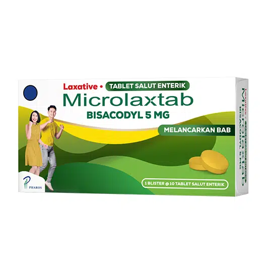 Microlaxtab adalah obat pencahar (laksatif) stimulan. Obat ini digunakan untuk mengatasi konstipasi (sembelit) atau untuk persiapan prosedur diagnostik. Obat ini tergolong Obat Bebas Terbatas (OBT/Biru). Informasi Umum Terkait Kandungan*: *Bisacodyl bekerja dengan merangsang saraf enterik di usus besar, menyebabkan peningkatan gerakan peristaltik dan akumulasi air serta elektrolit di usus, yang melunakkan feses dan memicu defekasi.