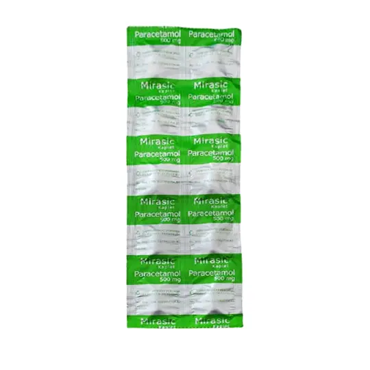 MIRASIC 500 MG 10 KAPLET adalah obat yang mengandung Paracetamol. Obat ini digunakan untuk meredakan nyeri seperti sakit kepala, sakit gigi, dan menurunkan demam.