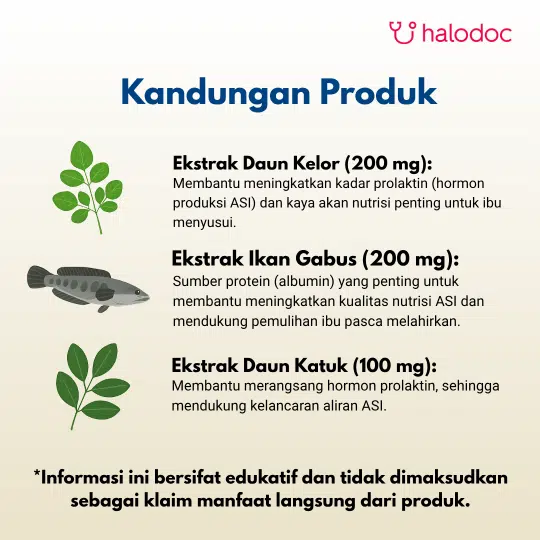 MOM UUNG ASI BOOSTER adalah suplemen herbal yang diformulasikan untuk membantu melancarkan Air Susu Ibu (ASI). Produk ini mengandung kombinasi ekstrak herbal alami. Channa Striata Ekstrak (Ekstrak Ikan Gabus) dikenal karena kandungan nutrisinya yang mendukung pemulihan dan kesehatan. Moringa Oleifera Folium Ekstrak (Ekstrak Daun Kelor) telah diketahui banyak digunakan karena kandungan galactagogue-nya yang dapat membantu meningkatkan produksi ASI. Terakhir, Sauropus Androgynus Folium Extract (Ekstrak Daun Katuk) juga dikenal luas dalam penggunaan umum sebagai tanaman yang secara spesifik membantu melancarkan aliran ASI. Perpaduan sinergis bahan-bahan ini bekerja untuk mendukung produksi dan kelancaran ASI, menjadikannya pilihan bagi ibu menyusui yang ingin mengoptimalkan pemberian ASI.