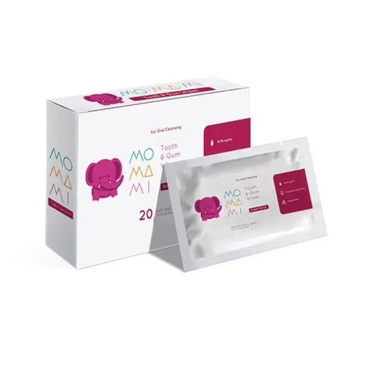 MOMAMI TOOTH & GUM merupakan tissue basah yang efektif membersihkan gigi, gusi dan lidah bayi dengan kualitas food grade, sehingga aman untuk bayi baru lahir