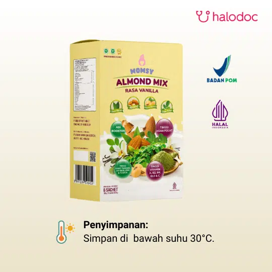 MOMSY ALMOND MIX RASA VANILLA adalah minuman booster ASI praktis dalam kemasan sachet. Kombinasi almond, galactagogue herbal, dan kurma berfungsi ganda sebagai sumber energi dan nutrisi.