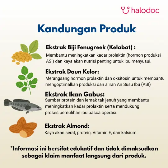 Almond Extract, Moringa Extract (Daun Kelor), Fenugreek (Bibi Klabet), dan Canna (Ikan Gabus) Extract