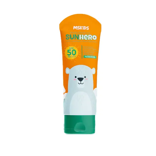 MSKIDS Sunhero Sunscreen SPF 50 PA++++ memberikan perlindungan sinar UV untuk wajah dan tubuh si Kecil. Sunhero diformulasikan untuk anak usia 3 tahun ke atas yang mulai aktif beraktifitas di luar ruangan. Diperkaya dengan Royal Jelly, Guava Leaf, dan Pumpkin Seed yang secara alami melindungi kulit dari paparan sinar UV A dan UV B, dan menjaga kelembapan dan serta kesehatan kulit si kecil. Sunhero mudah digunakan, cepat menyerap dan tidak lengket.