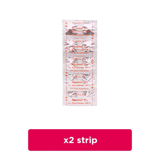 MYONAL 50 MG TABLET merupakan obat dengan kandungan Eperisone HCl 50 mg per tablet. Eperisone adalah obat antispasmodik yang bekerja sebagai relaksan otot/melemaskan otot rangka dan otot polos vaskular, yang menghasilkan pengurangan myotonia, peningkatan sirkulasi, dan penekanan refleks rasa sakit. Obat ini digunakan untuk pengobatan simtomatik terhadap kondisi yang terkait dengan spasme muskuloskeletal/kejang otot. Dalam penggunaan obat ini HARUS SESUAI DENGAN PETUNJUK DOKTER. Pembelian obat ini memerlukan edukasi terkait penggunaan atau pengonsumsian obat yang tepat dan aman yang akan dikenakan biaya.