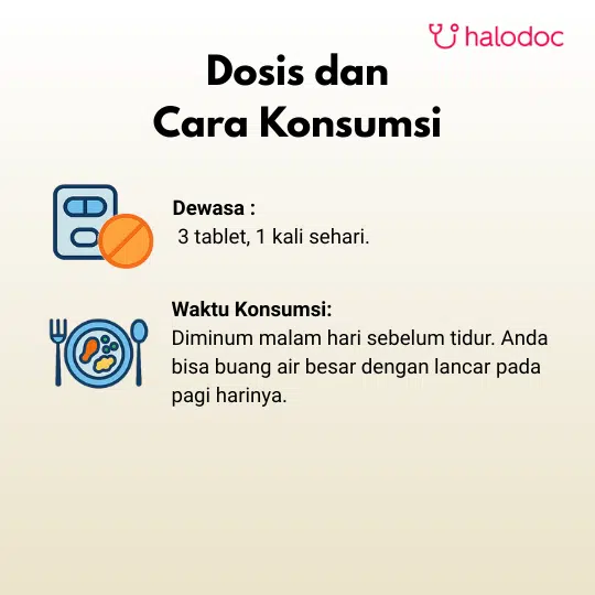 3-6 pil sekali sehari pada malam hari sebelum tidur, digunakan sampai hasil yang diharapkan tercapai