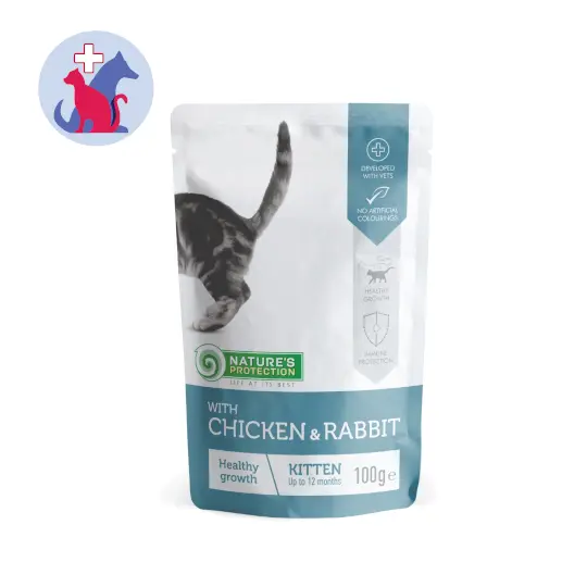 NATURE'S PROTECTION KITTEN HEALTHY GROWTH WITH CHICKEN & RABBIT merupakan makanan basah khusus untuk anak kucing dengan kandungan ayam dan kelinci agar membantu memenuhi kebutuhan nutrisi harian