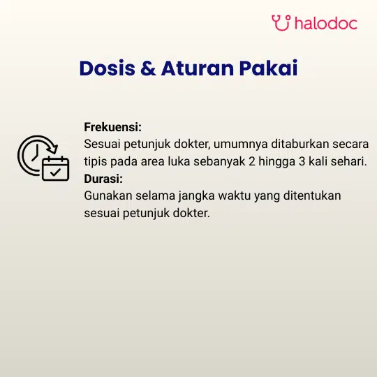 Dewasa dan Anak-anak: Taburkan serbuk secukupnya pada area yang sakit, beberapa kali sehari sesuai anjuran dokter.
