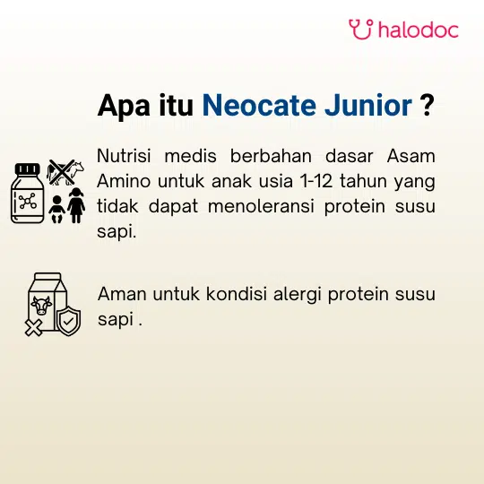 Jumlah dan pengenceran Neocate Junior yang dikonsumsi harus ditentukan oleh dokter dan tenaga medis sesuai usia, berat badan, dan kondisi medis pasien.