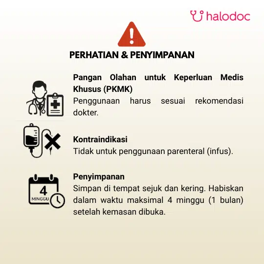 Penggunaan produk ini hanya untuk penggunaan oral dan sonde tidak untuk penggunaan parenteral.
