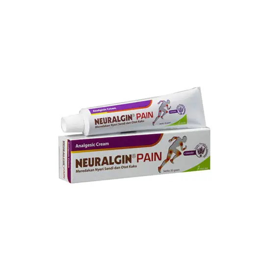 Neuralgin Pain Krim 30 Gram sebagai krim untuk pengobatan yang membantu meredakan nyeri otot, nyeri sendi, terkilir, memar, nyeri karena cedera olahraga dan nyeri punggung.