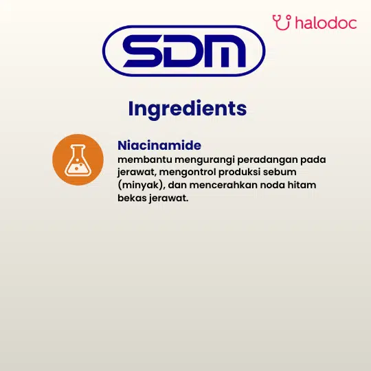 Jerawat yang meradang (inflammatory acne) terjadi karena respons peradangan tubuh terhadap bakteri dan sebum berlebih di dalam pori-pori. Produk ini mengandung Niacinamide (Nicotinamide) 4%, bentuk dari Vitamin B3, yang dikenal memiliki properti anti-inflamasi (anti-radang) yang kuat. Niacinamide bekerja dengan cara menstabilkan sel-sel imun dan menekan pelepasan mediator peradangan pada kulit. Hal ini secara langsung membantu menenangkan dan mengurangi gejala utama jerawat meradang seperti kemerahan, pembengkakan (papula), dan terbentuknya nanah (pustula). Selain itu, Niacinamide juga membantu memperkuat lapisan pelindung kulit (skin barrier), mengatur produksi sebum (minyak) berlebih, dan membantu menyamarkan noda bekas jerawat (post-inflammatory hyperpigmentation).