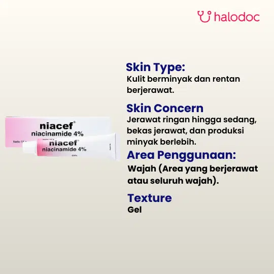 NIACEF GEL adalah gel perawatan wajah yang diformulasikan secara khusus untuk kulit yang cenderung berjerawat (acne-prone skin). Produk ini dirancang untuk membantu menenangkan kulit yang kemerahan dan merawat kulit berjerawat.