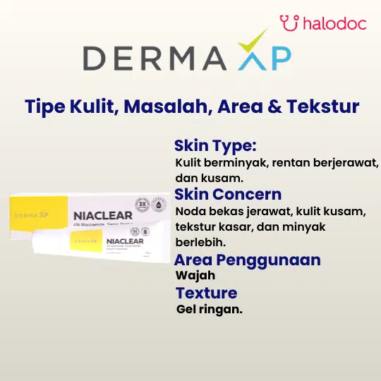 DERMA XP NIACLEAR GEL adalah gel perawatan wajah yang diformulasikan secara khusus untuk semua jenis kulit. Gel dengan kombinasi 4% Niacinamide dan Tranex Peptides ini membantu merawat jerawat, menyamarkan noda hitam, menjaga skin barrier, dan melembapkan kulit.