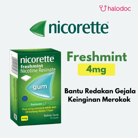 Nicorette Freshmint 4 mg adalah permen karet obat yang berfungsi sebagai Terapi Pengganti Nikotin (NRT). Produk ini dirancang untuk membantu individu yang ingin berhenti atau mengurangi merokok.