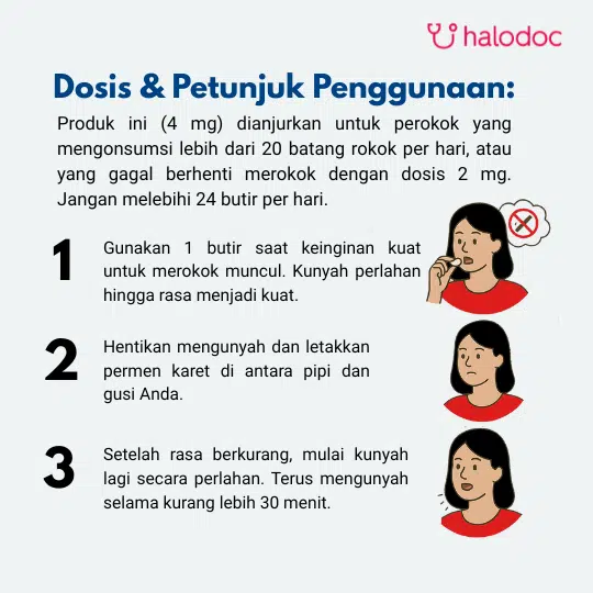 - Lebih dari 20 batang rokok: Satu butir gum 4 mg.