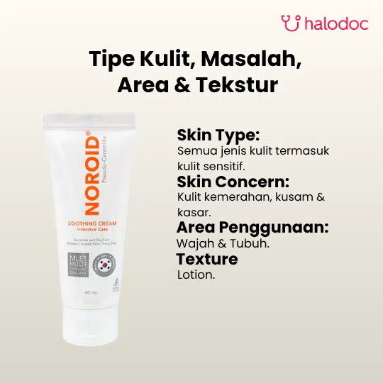 NOROID SOOTHING CREAM merupakan pelembap yang menggunakan patent Teknologi MLE (Multi Lamellar Emulsion) sehingga strukturnya serupa dengan struktur lipid stratum korneum manusia. Kandungan Pseudoceramide berfungsi untuk membantu untuk merawat skin barrier dan membantu melembabkan kulit yang kering serta Defensamide yang membantu untuk menjaga sistem pertahanan kulit secara alami.
