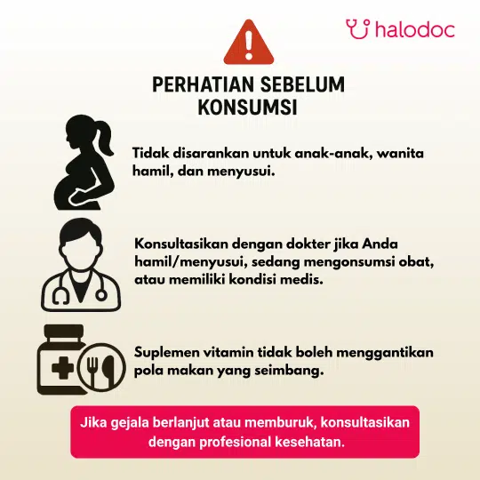 Hati-hati penggunaan pada penderita dengan riwayat batu ginjal.