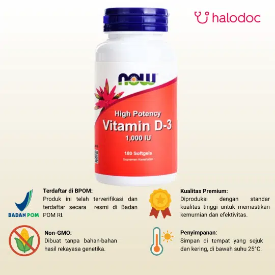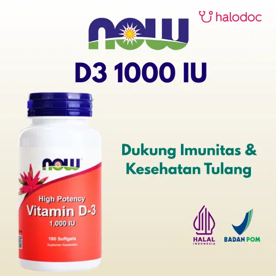 NOW VITAMIN D3 1000 IU adalah suplemen kesehatan yang diformulasikan untuk membantu memenuhi kebutuhan Vitamin D harian guna mendukung kesehatan tulang dan sistem imun.