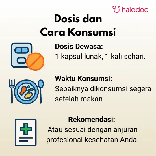 Tiap kapsul lunak mengandung: Vitamin D3 (Cholecalciferol) 1000 IU.