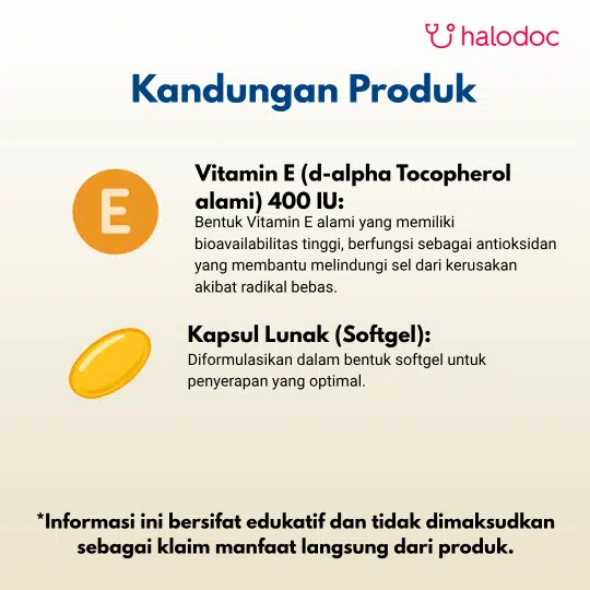 Tiap kapsul lunak mengandung Vitamin E 400 IU