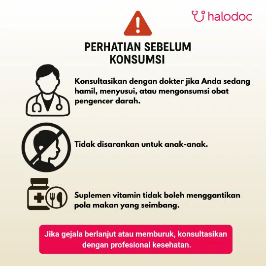 Hati-hati penggunaan pada pasien yang sedang mengonsumsi obat pengencer darah (antikoagulan) seperti warfarin.