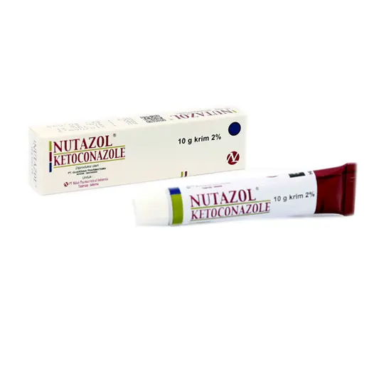 Nutazol mengandung zat aktif Ketoconazole, antijamur golongan imidazole. Krim ini digunakan sebagai antijamur topikal untuk infeksi jamur pada kulit dan selaput mukosa seperti athlete's foot, kurap, infeksi dermatofita pada kulit atau kuku tangan, candidiasis dan tinea versikolor (panu).