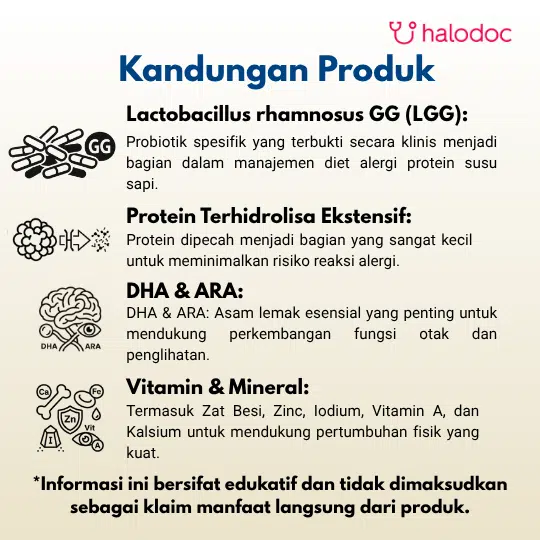 Produk ini merupakan pangan olahan keperluan medis khusus berbahan dasar asam amino non- alergik untuk tata laksana diet bayi usia 0-12 bulan dengan alergi susu sapi dan intolerasi protein (Hipoalergenik).